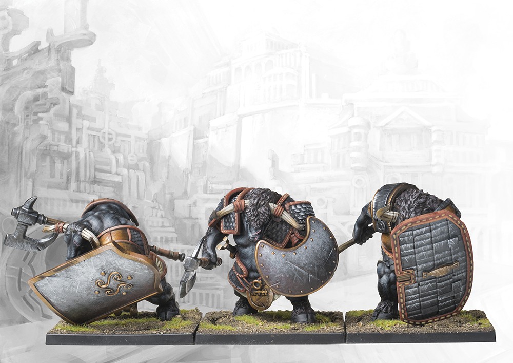 • Dual Kit. Contains 3 Plastic Miniatures (Minotaur Thyreans/Haspists)