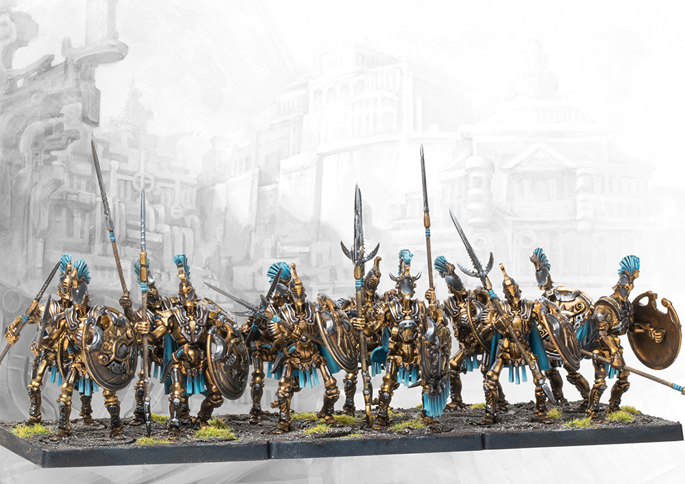 Powerful automata, the Clockwork Hoplites are the premium City States regiment for capturing and defending positions. High quality attacks paired with incredible resilience and lack of Resolve Tests makes this Heavy Infantry Regiment an important piece of any City States commander’s arsenal.