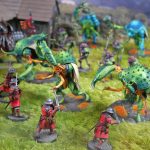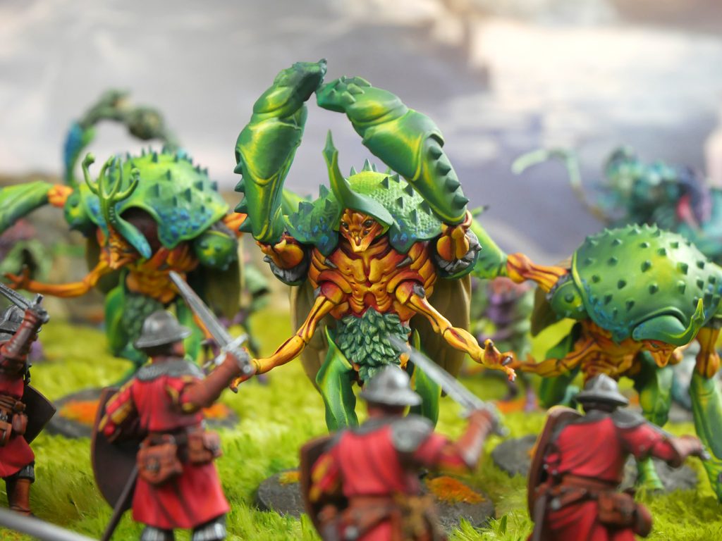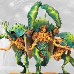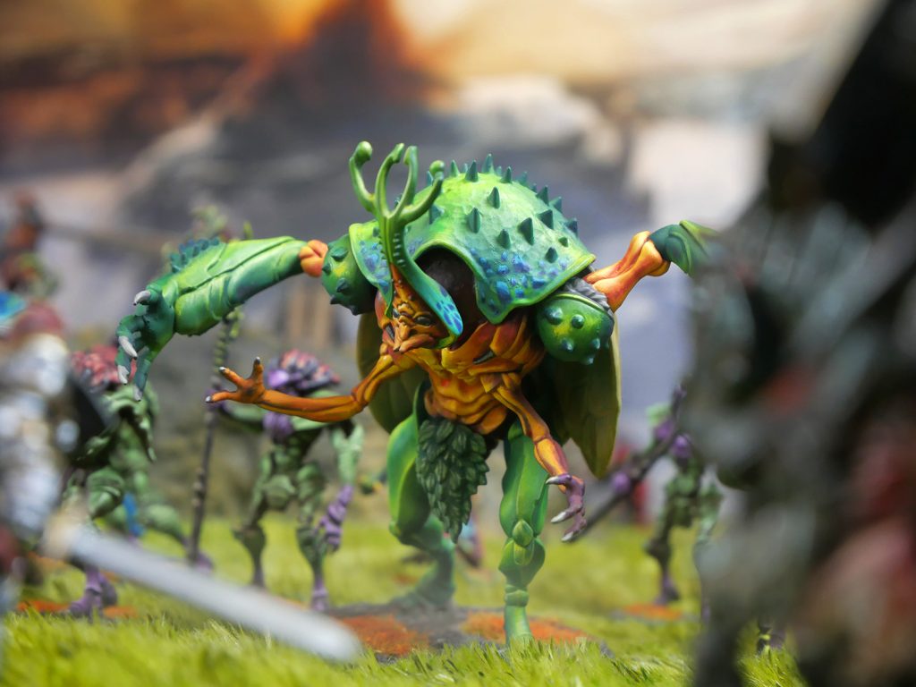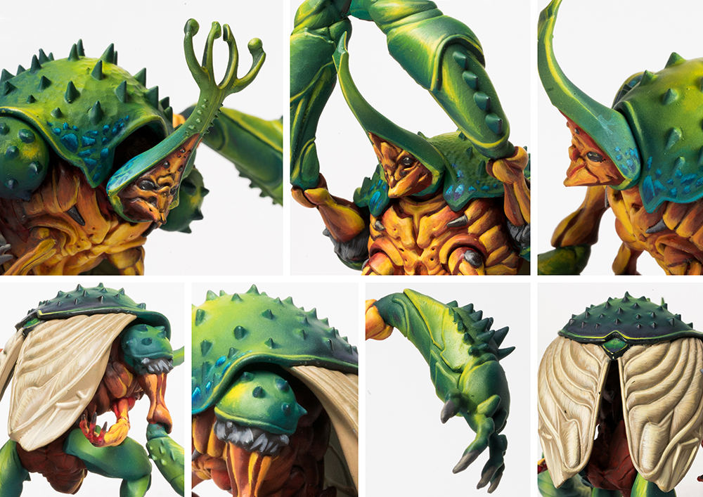 These beetle-like behemoths surge into the enemy, forming the chitinous spearhead of a Weaver Court’s Warband. Their thick iridescent carapaces turn aside enemy blows, while they use their immense size and strength to pulverise all those who stand in their way.