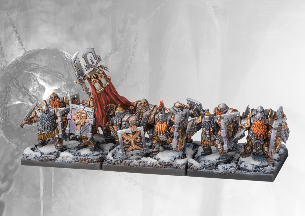 It is a testament to the harshness and potential dangers of military advancement, the fact that the bulk of Dweghom warriors have stepped off the advancement track and committed themselves to a lifetime of military service. The sword and shield remain the traditional equipment of these warriors. On the other hand, battle with a flying opponent quickly cured the Dweghom of preconceptions against ranged combat. The ballistae were the first ranged weapon developed to combat dragons and remain a powerful instrument of death against lesser foes, their ease of production and repair making them a staple of the Hold armories.