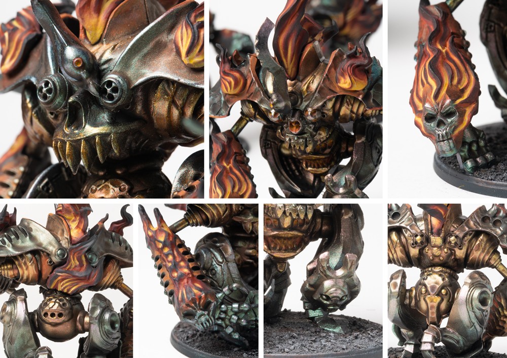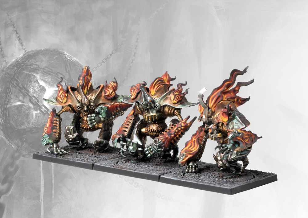 Powered by its furnace and driven by the cruel intellect that permeates it, the Inferno Automata is a terror on the battlefield whose piston driven limbs can propel their incandescent bodies across the battlefield with blistering speed. Once in combat the demonic nature of the spirit that inhabits it becomes readily apparent as they rend those opponent who survive the blistering heat and toxic fumes of its furnace limb from limb, growling and hissing with pleasure throughout the entire grisly affair.