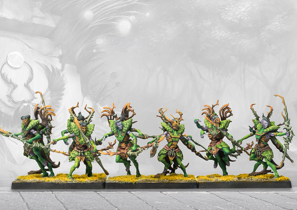 Kern skirmishers form the backbone of most Weaver forces. Drawn from the extended kith-bands of the Weaver Courts these skilled warriors, equally deadly with the bow and blade, can take advantage of any opening in the opponent’s line, equally comfortable staying back and pelting the enemy with seed tipped arrows or rushing in to exploit the gaps created by the willy Weaver forces.