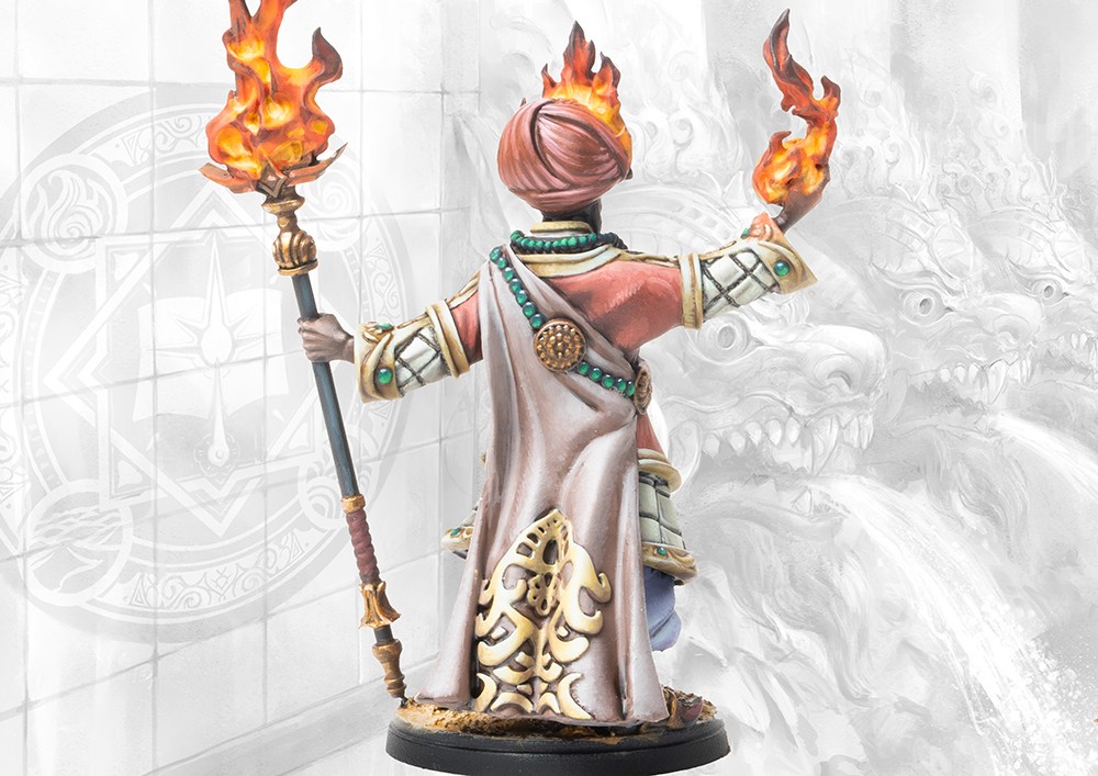 The most powerful of the Sorcerer King’s Spellcasters, the Maharajah empowers Rituals to their fullest potential.  Like all Sorcerer Kings’ Characters the Maharajah is able to choose between spells from the court of Air or Fire which will in turn provide Mainstay Regiments of that Element. Like all Character Stands in the Army, the Maharajah has access to Spells and Rituals unique to them putting heavy emphasis on accelerating the culmination of Rituals for them and all other Spellcasters. The Maharajah is a perfect fit for the Player who enjoys bringing the full might of Rituals on the battlefield and delve deeper to this unique spellcasting mechanic.