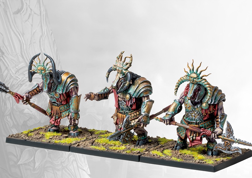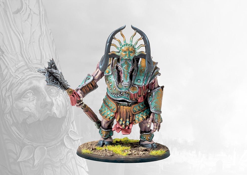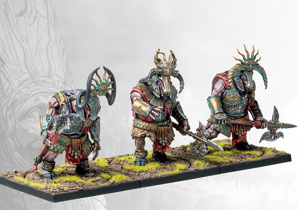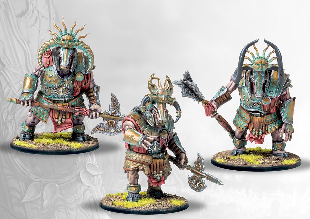 The Buccephaloi of the Old Dominion were the sacred guardians of it’s holiest sites. Clad in beautiful ceremonial panoplies, these simple and devout guardians were selected from amongst the most powerful of Minotaur Thyreans, their horns ritually cut off in an act of devotion and subservience to Hazlia. Such was the power and majesty of the Buccephaloi that only in death were they called to battle, while alive none dared oppose them.