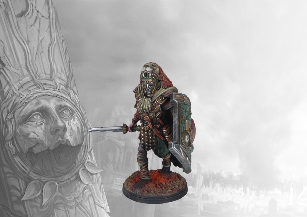 A Strategos is the supreme commander of a Dominion Legion, a master of men who commanded the absolute loyalty of his troops, serving as their temporal and spiritual leader while on campaign. His mastery was one of strategy and diplomacy, allowing his officers, the ten Xhiliarchs who served under him to focus on logistics, tactics and the disposition of the troops. Entombed with all the pomp and ceremony one could expect, their awakening into an unlife of service is complete with misery and loss, for unlike the lesser order they not only retain their cognitive function, but memories from before. This makes them a double edged sword for those who would seek to command them: while one of the easiest and most efficient ways to secure the performance and power of an awakened Legion, the Strategoi are no unthinking minions to command. Their cognitive function and memories have allowed them to retain their personalities and with it, ambition.