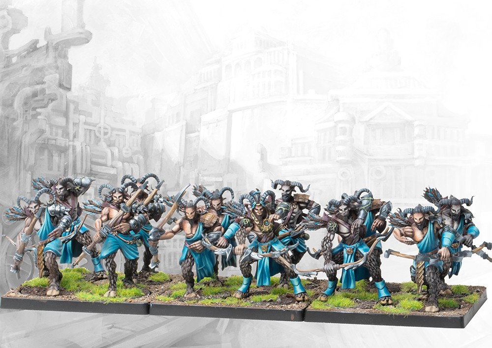 • Dual Kit. Contains 12 Plastic Miniatures (Satyroi/Selinoi, with the option of making their respective command models)