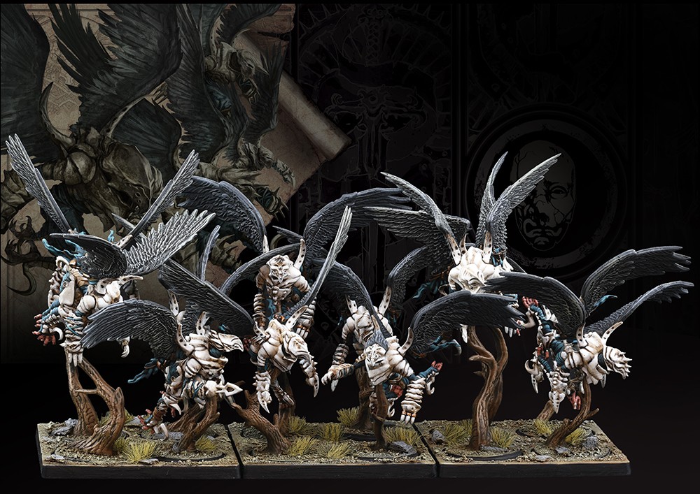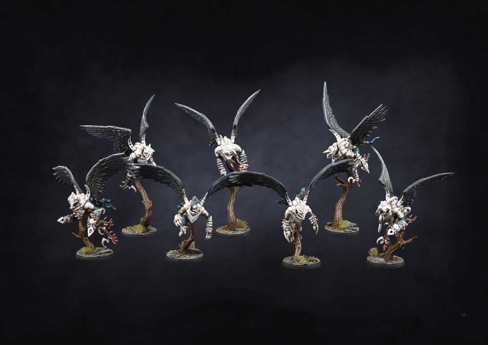 The first models” to fly” in the Conquest game. With bones lightened to the degree they can scarcely support the musculature that power the mighty pinions that bear them aloft, a Spire Stryx would be incapable of posing a significant threat on the battlefield were it not for the cruel disregard their masters have for their lives… and the lethal, toxic payload they carry in their bloated sacks.