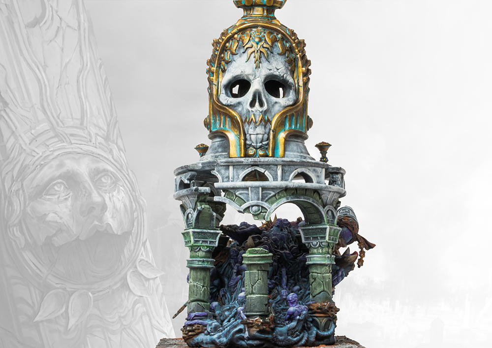A twisted pile of the once faithful, the Unhallowed Sepulcher consumes both itself and the essence of others, offering temporary power to itself and those around it. The sepulcher functions as an unholy battery, slowly draining its fuel to empower others or unleash barrages of corrupted energy.